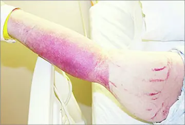 یک خانم 47 ساله با سابقه‌ی جراحی شکم به‌علت سنکوپ و خونروی حاد معده و روده مراجعه کرد. او به بیمارستان رفت و ضمن آنکه پایش دائمی فشارخون می‌شد، یک راش ازنوع پتشی با حاشیه‌ی بالایی کاملاً مشخص در بازو و دور ازکاف اسفیگمومانومتر پدید آمد.